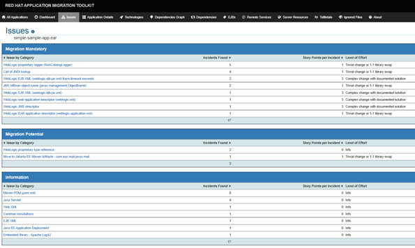 # ./rhamt-cli-4.3.1.Final/bin/rhamt-cli--input ./simple-sample-app.ear --output --source weblogic --target eap:7--packages com.acme