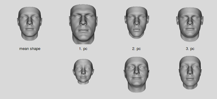 转换到三维空间,道理也一样。每一个三维的人脸,可以由一个数据库中的所有人脸组成的基向量空间中进行表示,而求解任意三维人脸的模型,实际上等价于求解各个基向量的系数的问题。