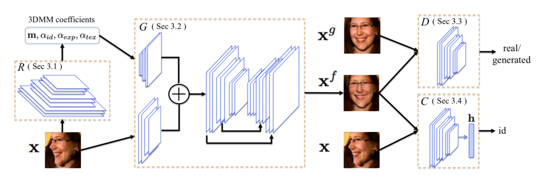 [17] Yin X, Yu X, Sohn K, et al. Towards Large-Pose Face Frontalization in the Wild[C]. international conference on computer vision, 2017: 4010-4019.
