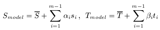 其中第一项是形状和纹理的平均值,而si,ti则都是Si,Ti减去各自平均值后的协方差矩阵的特征向量,它们对应的特征值按照大小进行降序排列。