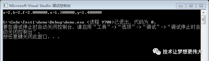 printf("a=%d,b=%d,f=%f,x=%f,y=%f\n",a,b,f,x,y);