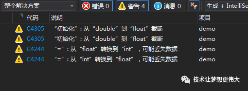 我们从中可以看到,虽然x,y变强制转换int型,但是最后输出的值不变,强制类型转换没有影响x和y变量原本的类型。而上图警告已经说明了一切。