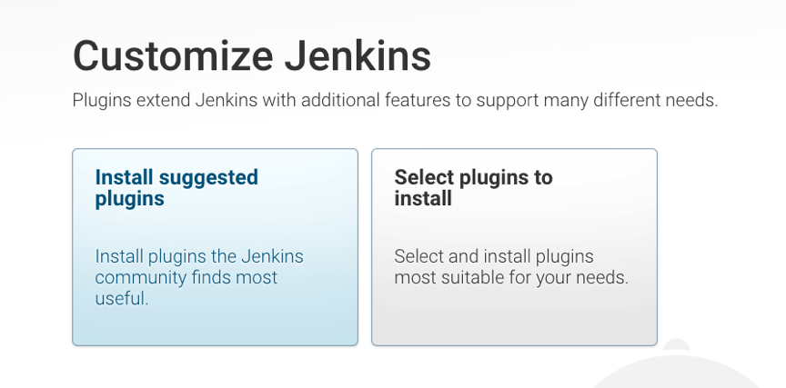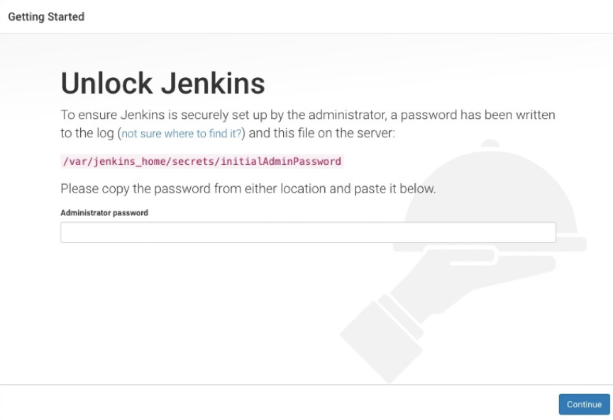 解锁:当您第一次访问Jenkins的时候,系统会要求您使用自动生成的密码对其进行解锁。解锁秘钥可以通过$JENKINS_HOME/secrets/initialAdminPassword文件获取。还可以通过在启动日志中获取。