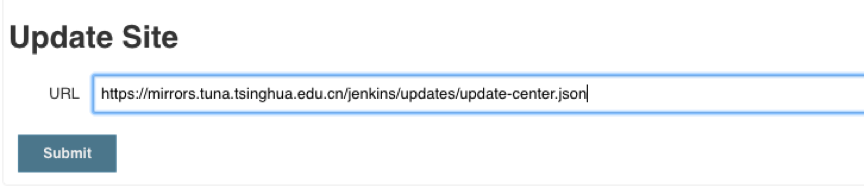 配置更新站点:由于使用官方的站点速度相对很慢,这里采用清华大学的jenkins更新站点。