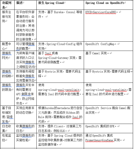 (2)将 SpringCloud 迁移的时候,按照 K8S 的特点,对组件进行改造。K8S 层有的就用 K8S 的。如下表所示。