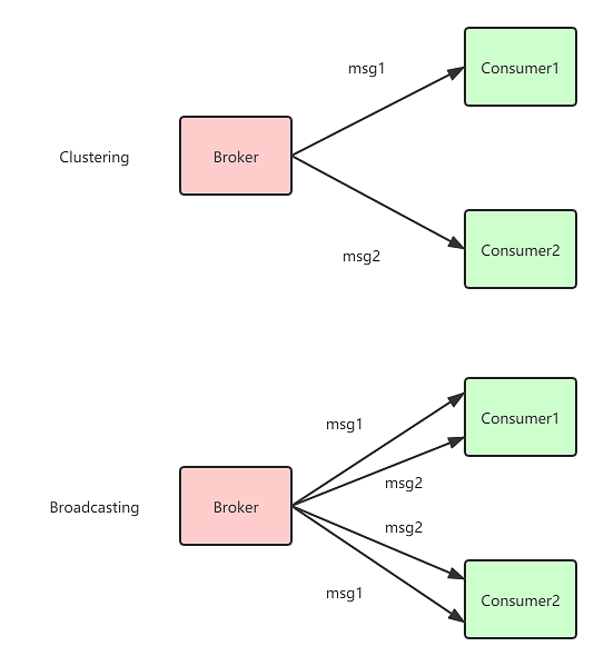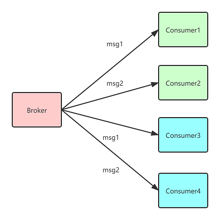 Broadcasting(广播消费):相同Consumer Group的每个Consumer实例都接收全量的消息