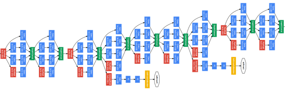 Inception_v2架构包含三个主要组件:首先,它在网络中间引入了两个附加的辅助分类器,以解决梯度消失问题;其次,由于同一层中的过滤器大小不同,因此与Resnet相比它具有更深更宽的网络(结构);最后,为了解决因为减少输入大小引发的信息丢失问题,网络通过使用两个3x3卷积(而不是一个5x5卷积)升级了Inception_v1。