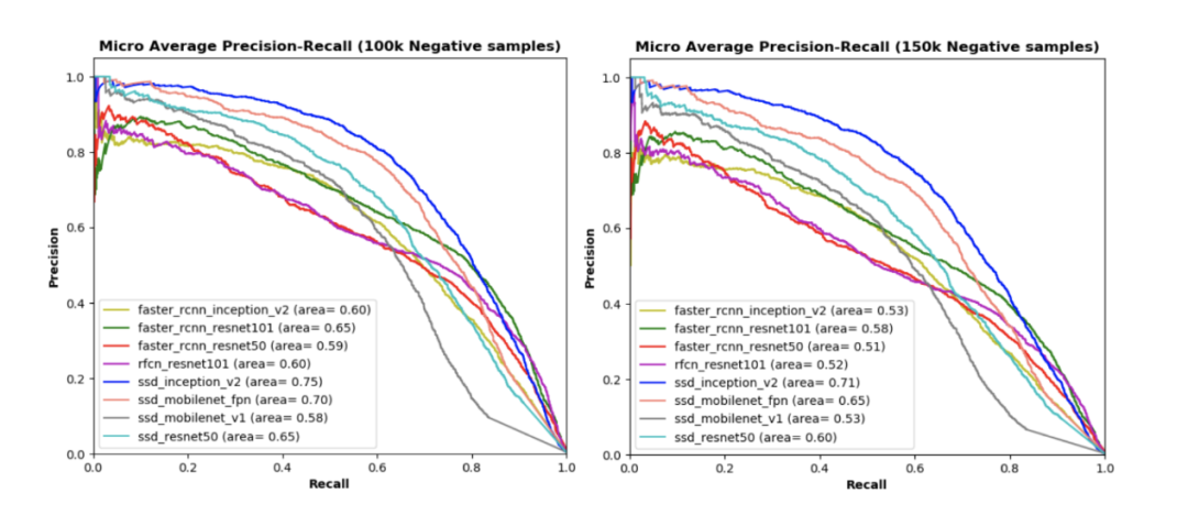 (3)在每个测试数据集中,SSD_Mobilenet_v1曲线下的面积最低,这意味着我们模型的性能不仅依赖于检测网络,而且还依赖于网络后端(如用于特征提取的不同CNN模型)。