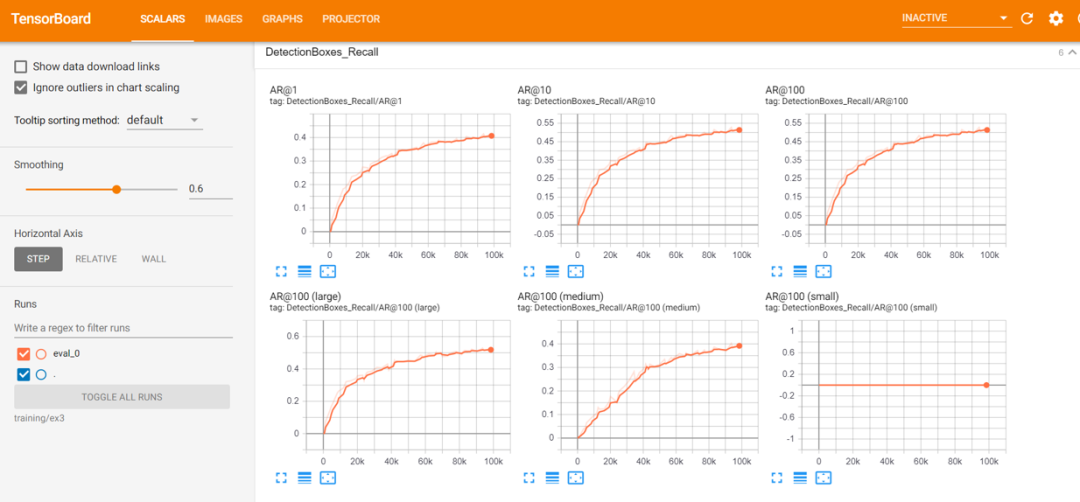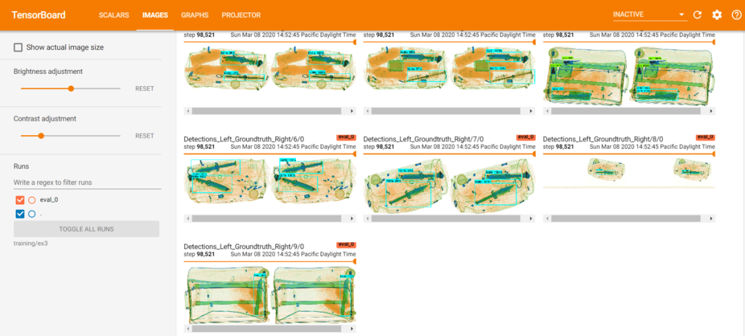 用于训练的图像为7200个正样本,在这个项目中,我们没有将负样本添加到我们的训练集中,因为检测模型会将不属于真实边界框的图像区域作为负样本。此外,训练过程由TensorBoard监控,可以在线查看训练进度,如结束训练的步数、训练损失、验证损失等等。