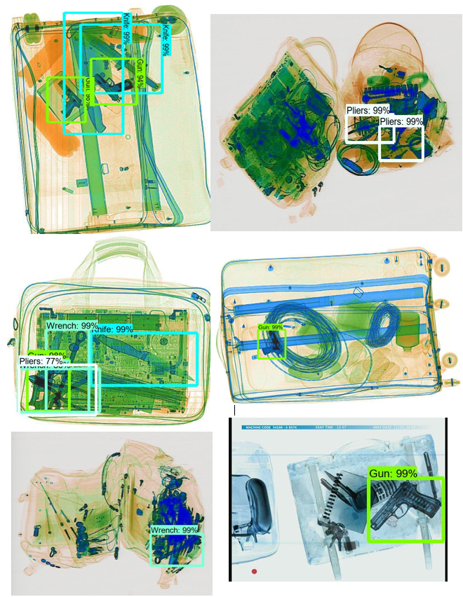每天有数百万人乘坐地铁、民航飞机等公共交通工具,因此行李的安全检测将保护公共场所免受恐怖主义等影响,在安全防范中扮演着重要角色。但随着城市人口的增长,使用公共交通工具的人数逐渐增多,在获得便利的同时带来很大的不安全性,因此设计一种可以帮助加快安全检查过程并提高其效率的系统非常重要。卷积神经网络等深度学习算法不断发展,也在各种不同领域(例如机器翻译和图像处理)发挥了很大作用,而目标检测作为一项基本的计算机视觉问题,能为图像和视频理解提供有价值的信息,并与图像分类、机器人技术、人脸识别和自动驾驶等相关。在本项目中,我们将一起探索几个基于深度学习的目标检测模型,以对X射线图像中的违禁物体进行定位和分类为基础,并比较这几个模型在不同指标上的表现。