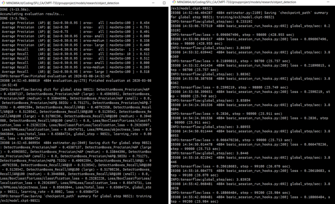 训练是在带有深度学习VM的Google cloud平台上完成的。我们训练了8种不同的目标检测模型。