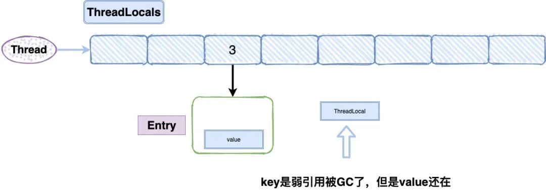 这就导致了一个问题,ThreadLocal在没有外部强引用时,发生GC时会被回收,如果创建ThreadLocal的线程一直持续运行,那么这个Entry对象中的value就有可能一直得不到回收,发生内存泄露。