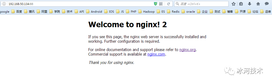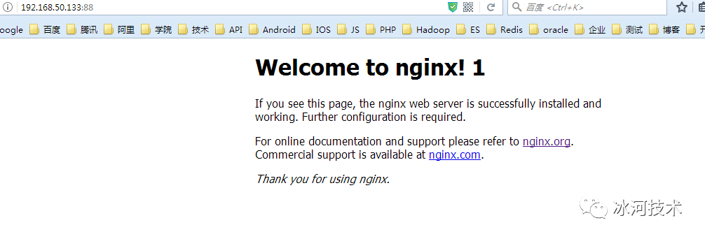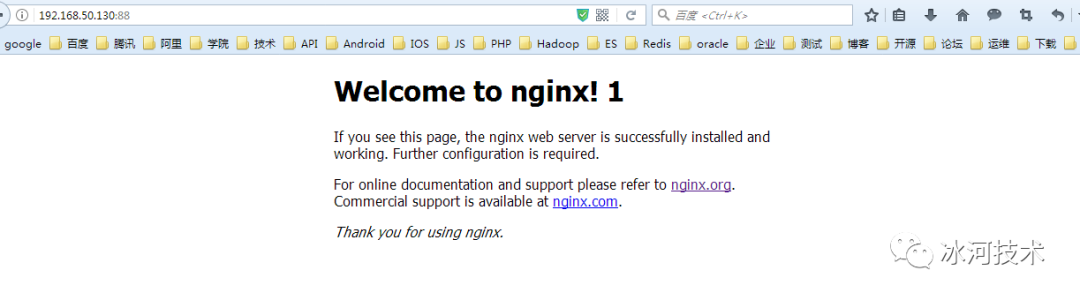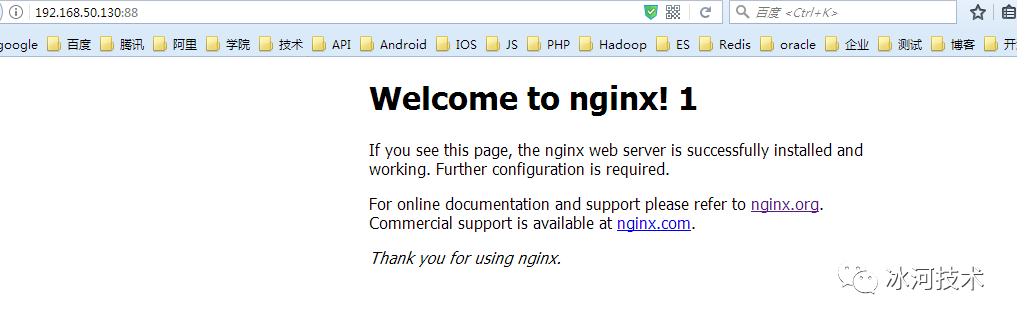同时启动192.168.50.133和192.168.50.134上的Nginx和Keepalived,我们通过VIP(192.168.50.130)来访问Nginx,如下所示。