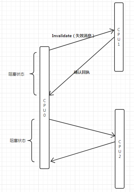 CPU0 只需要在写入共享数据时,直接把数据写入到 store bufferes 中同时发送 invalidate 消息,然后继续去处理其他指令。当收到其他所有 CPU 发送了 invalidate acknowledge 消息时,再将 store bufferes 中的数据数据存储至 cache line中。最后再从缓存行同步到主内存。