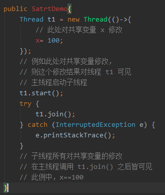 假设 x 的初始值是 10,线程 A 执行完代码块后 x 的值会变成 12(执 行完自动释放锁),线程 B 进入代码块时,能够看到线程 A 对 x 的写操作,也就是线程 B 能够看到 x==12。
