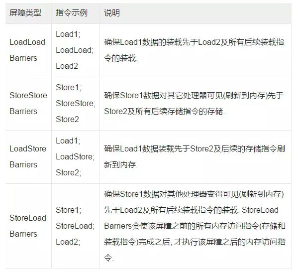 为了保证内存可见性,Java 编译器在生成指令序列的适当位置会插入内存屏障来禁止特定类型的处理器的重排序,在 JMM 中把内存屏障分为四类