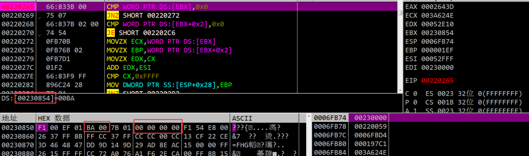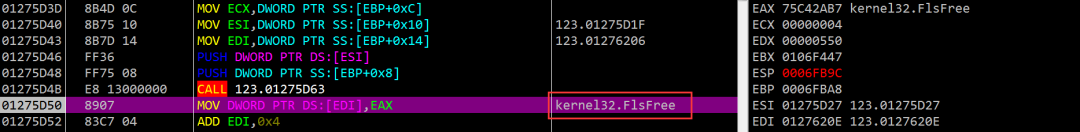 判断是否接着拷贝数据是根据之前第三段shellcode最终解密出来的数据。当值不为0的时候就继续执行拷贝。