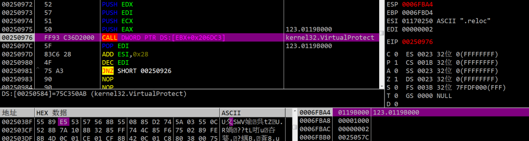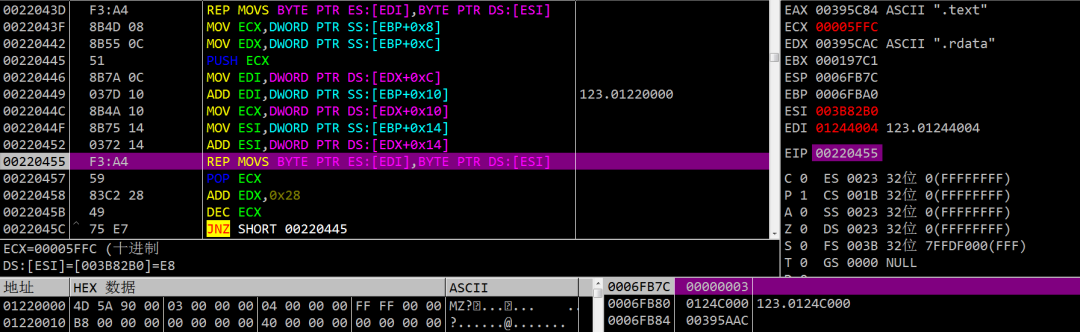 将从dll里面拷贝的数据以特殊的方式进行调整位置。末尾是2FB的函数就是调整位置的函数。