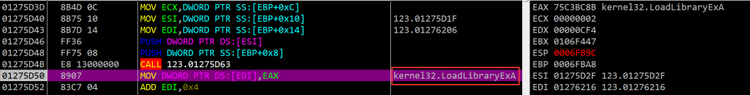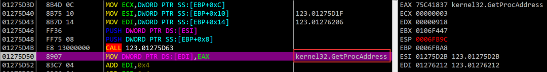 获取函数地址kernel32.dll中指定函数的地址。这里shellcode当中使用的循环,每次都对kernel32.dll的导出表进行遍历,找到需要的函数名之后在从头开始遍历