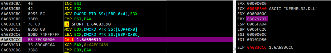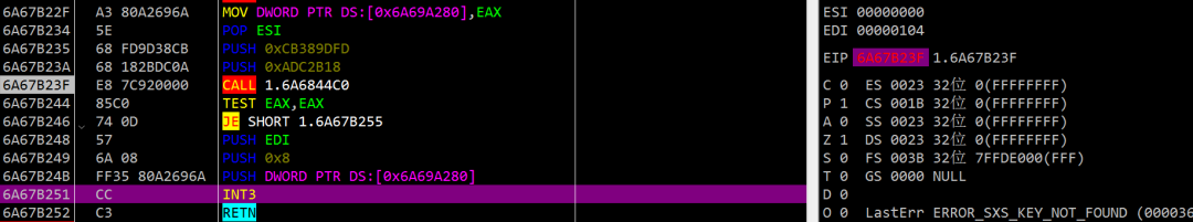 之后获取0xCB389DFD RtlAllocateHeap函数的地址,获取之后判断是否获取成功,之后触发INT3 异常。