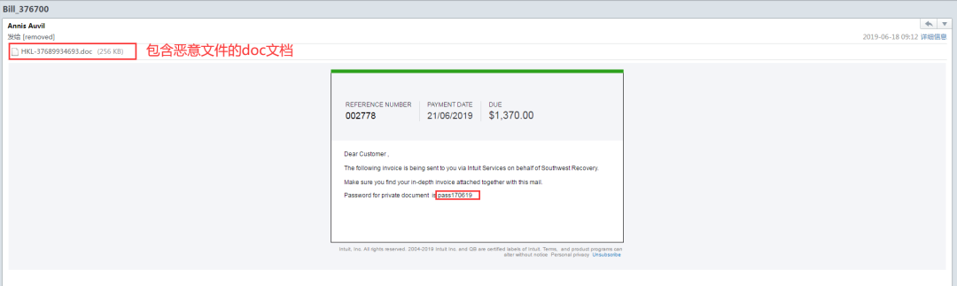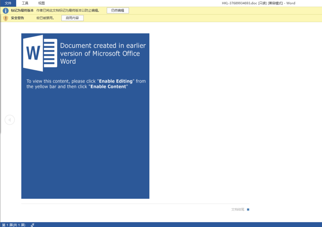 样本的传播是通过钓鱼邮件发送恶意doc文件,邮件内容如下。