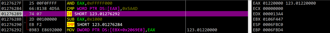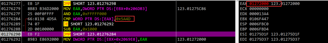 通过pe头标志和对地址每次减0x1000来获取加载基址。
