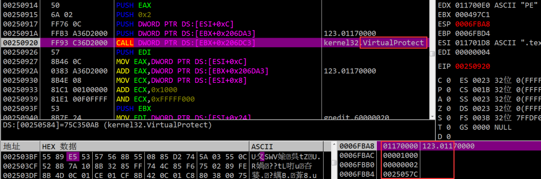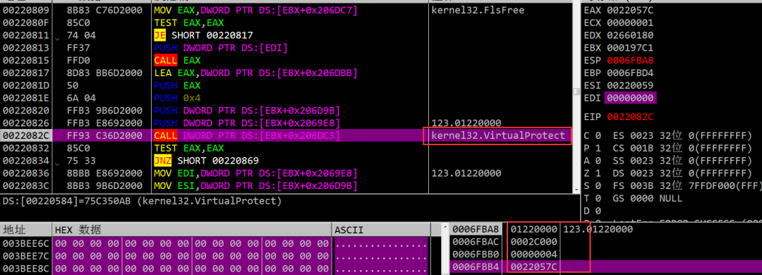 更改1220000地址的内存页属性为可读可写,这个地址就是dll加载的地址。