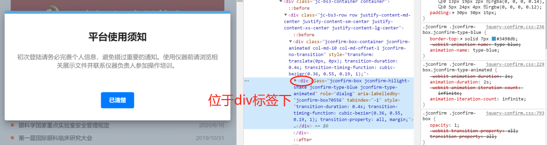 所以我们对这个弹出框进行元素审查