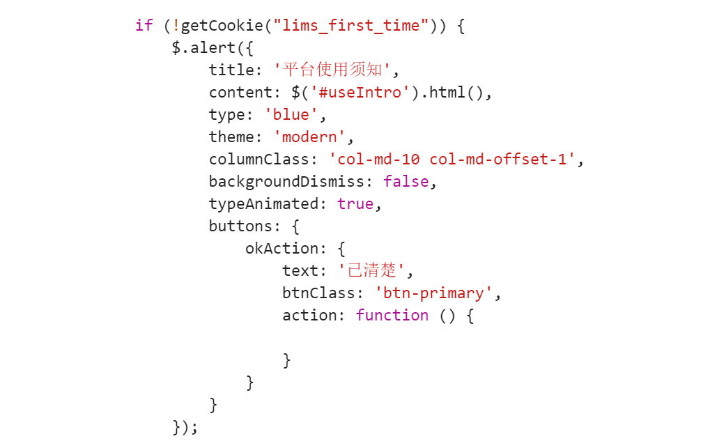 看一下这个弹出框的js是怎么写的: