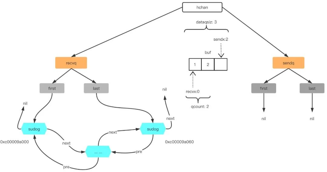 上篇文章讲了 channel 的基本使用,讲了一些使用时需要注意的事项,本文将重点介绍 channel 中的两个数据结构:循环队列 与 双端链表 。