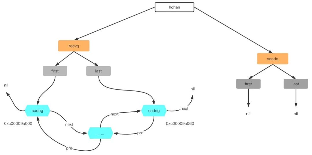 双端链表 是用来挂起阻塞的读、写 goroutine 的,在被唤醒时会按照入队顺序公平的进行通知; -