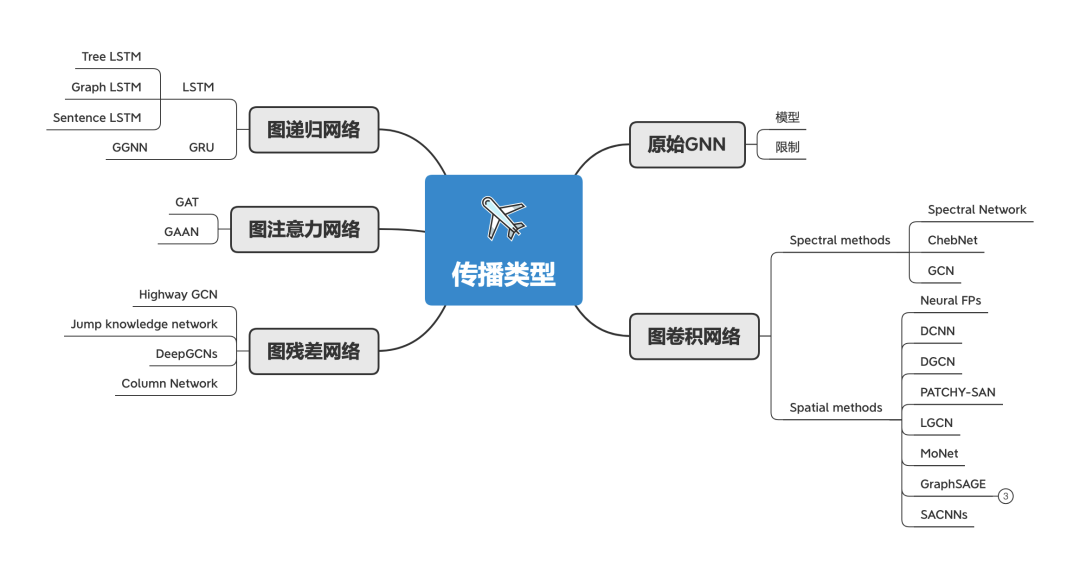从原始GNN开始,衍生了图卷积网络、图递归网络、图注意力网络、图残差网络等。