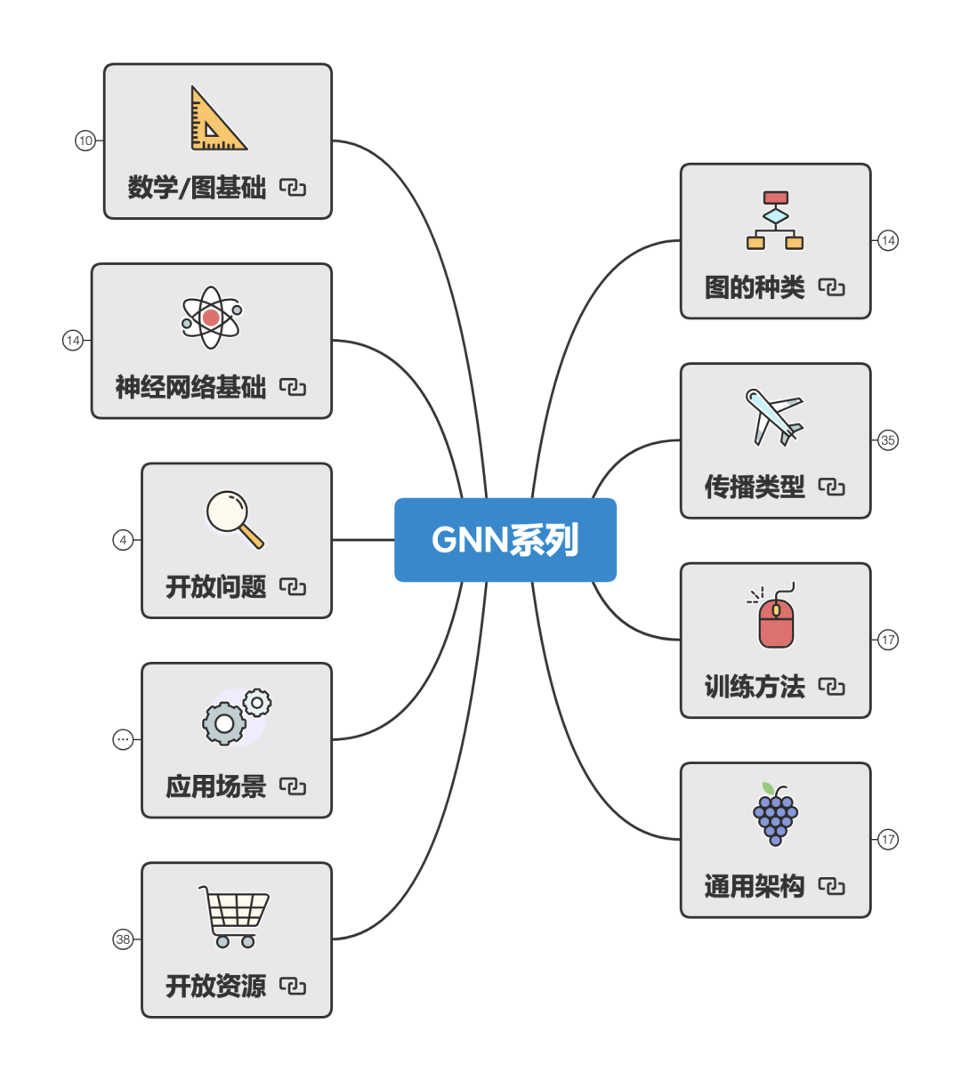 首先是总架构,从下方的思维导图可以看到,我们可以从九个方面来全方面了解我们的GNN。