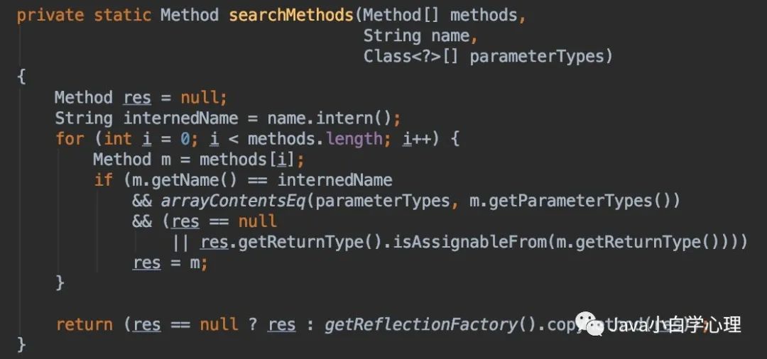 实际上,调用Class对象的getMethod()方法时,内部会循环遍历所有Method,然后根据方法名和参数类型匹配唯一的Method返回。