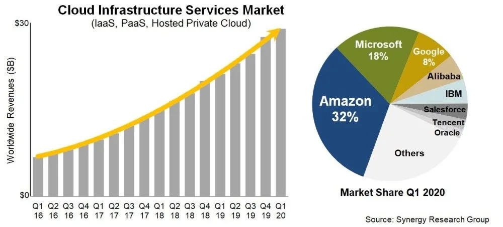 我们曾分析过,谷歌近年来在开源领域的保守举动或许更多的是迫于市场压力。根据调研机构 Synergy Research 发布的报告显示,在 2020 年 Q1 全球云服务市场中,谷歌云的市场占比仅为 8%,远远落后于 AWS 与微软 Azure 。而出自谷歌之手的 Kubernetes 作为全球云基础设施建设的事实标准,不仅没有给谷歌带来相应的收益,反而让竞争对手赚得盆满钵满。