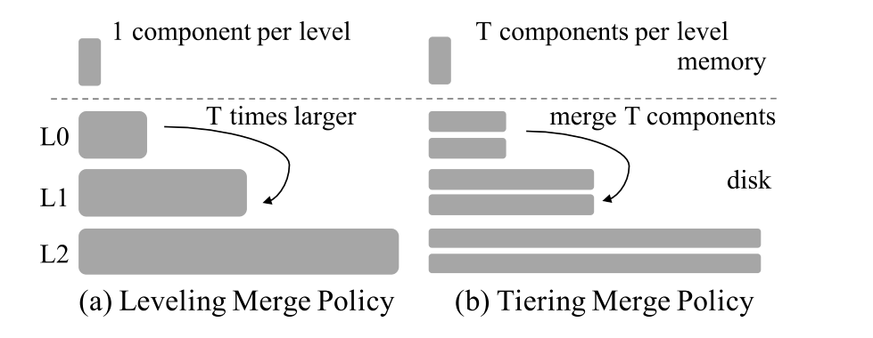LSM Tree有两种合并策略,Tiering 和 Leveling。我们看图说话: