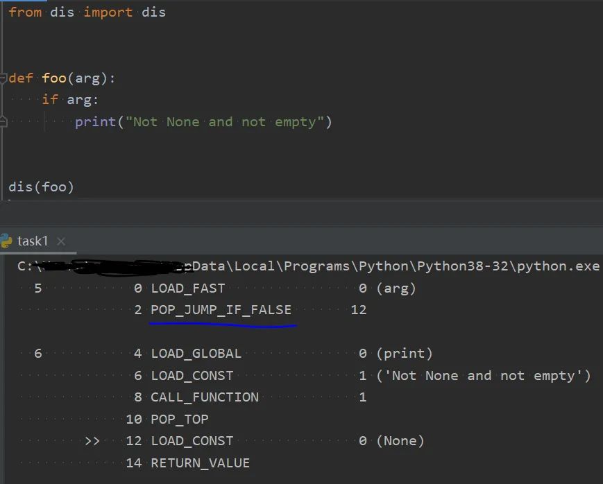POP_JUMP_IF_FALSE指令对应的是 if 语句那行,它的含义是: