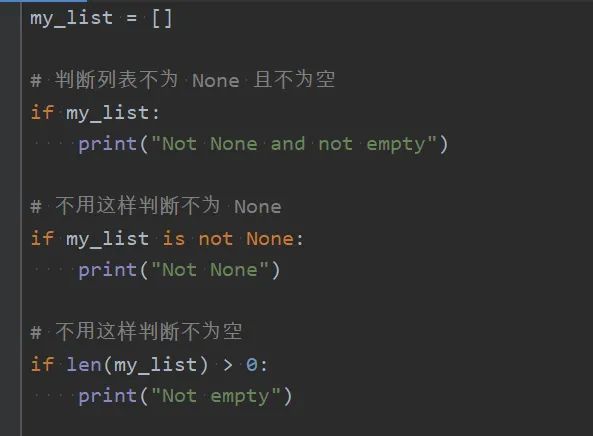 如果需要作出相反的判断,即“如果为 None 或为空”,只需要写成if not my_list 即可。
