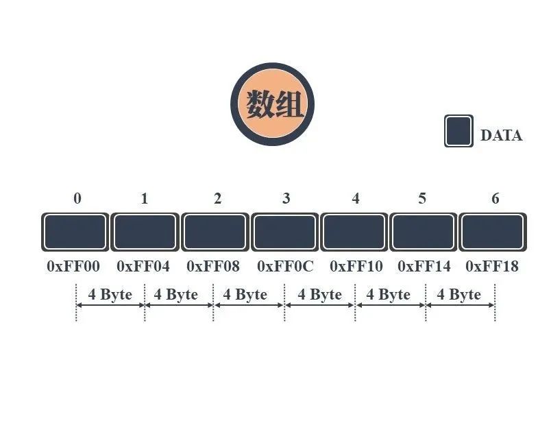 数组可以说是最基本最常见的数据结构。数组一般用来存储相同类型的数据,可通过数组名和下标进行数据的访问和更新。数组中元素的存储是按照先后顺序进行的,同时在内存中也是按照这个顺序进行连续存放。数组相邻元素之间的内存地址的间隔一般就是数组数据类型的大小。