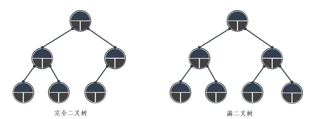 满二叉树:除了最后一层,其它层的结点都有两个子结点。