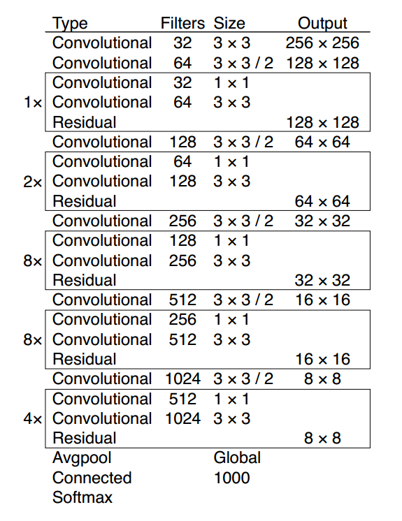 Darknet-53是专门为YOLO-V3设计的一个深度学习框架,有着非常好的图像识别的效果,如下图: