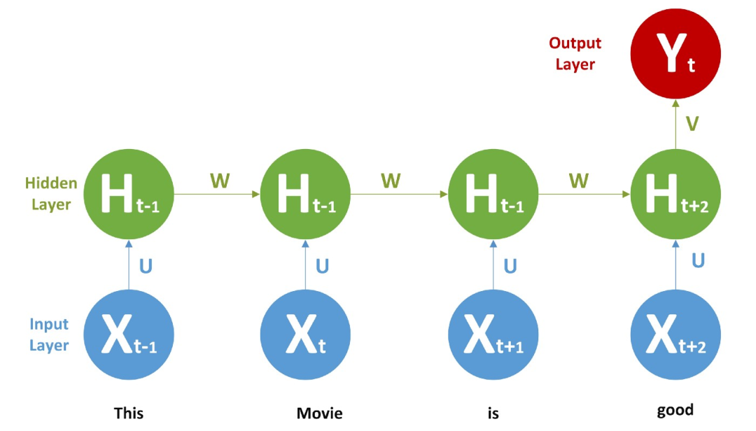 现在我们回过头来谈谈我们的情感分析问题,这里有一个 RNN,