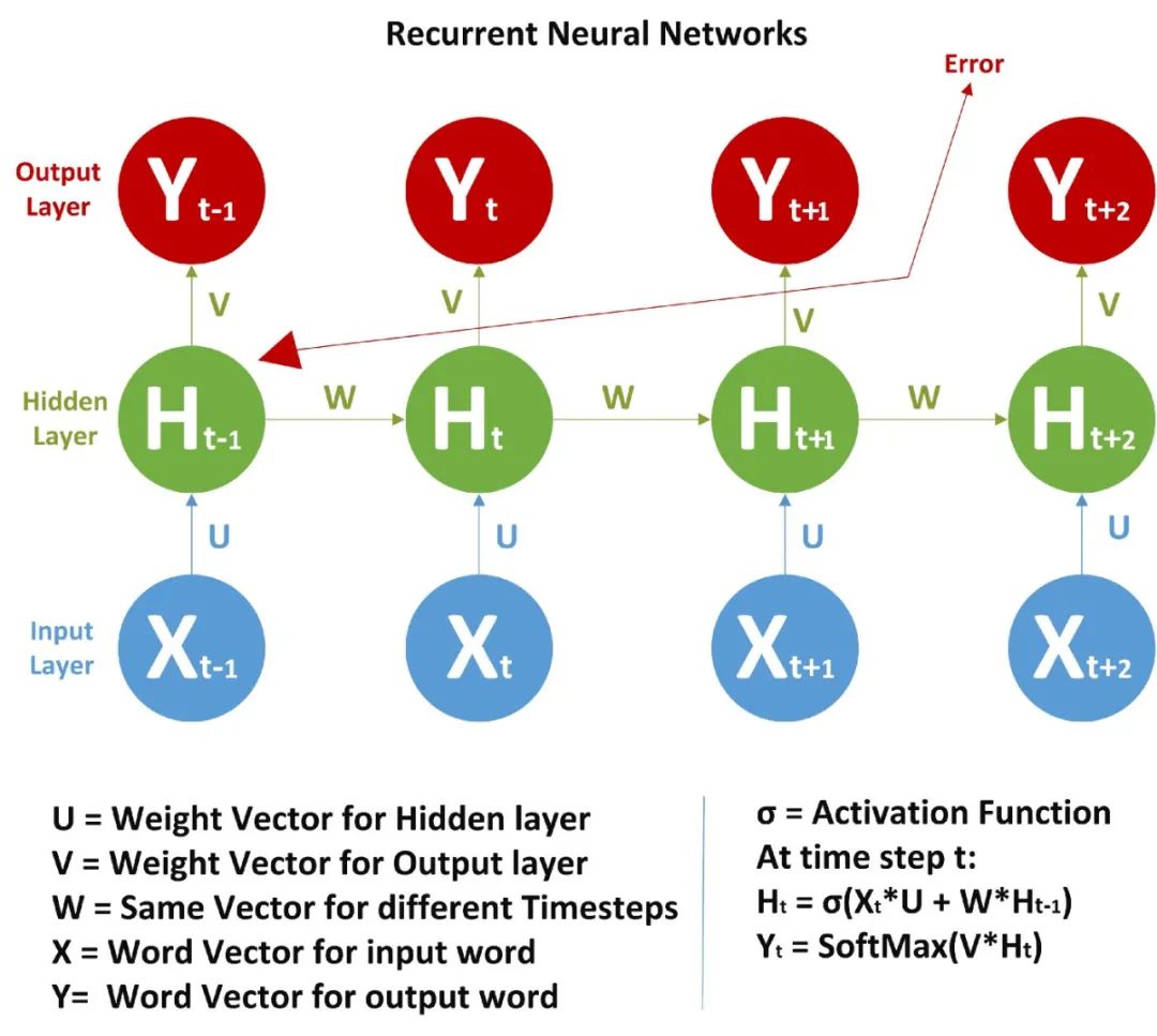 由于 W 对于所有的时间步长都是一样的,在反向传播过程中,当我们回去调整权重时,信号会变得要么太弱要么太强,从而导致要么消失要么爆炸的问题。为了避免这种情况,我们使用 GRU 或 LSTM,将在后续文章中介绍。