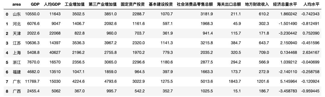 columns=['经济总量水平', '人均水平'])) # 与原来的数据拼接