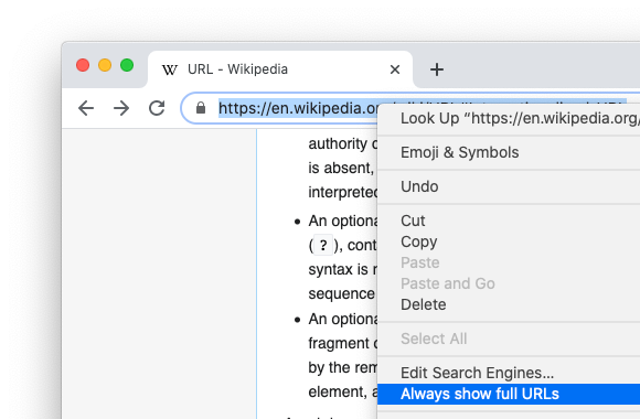 在 Chrome 86 中,谷歌将会对新特性进行灰度测试。被选中的 Chrome 86 用户在使用浏览器时会看到地址栏不显示完整 URL,而是仅显示域名。这时他们有两种选择,一是将鼠标悬停至地址栏时会显示完整 URL 并加入了悬浮动画;二是可以在 URL 处点击右键并在弹出的菜单中选择“始终显示完整 URL”,启用后所访问的网站均显示完整 URL。