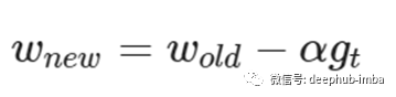 梯度下降法是求解最优解的最传统的方法。在这个算法中,使用当前梯度(gt)乘以一些称为学习率的因子来更新当前权值。更新规则的公式如下所示。