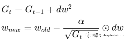 Gt是一个对角矩阵组成的平方和过去的渐变和ϵ平滑项。此外,表示矩阵-向量积运算。