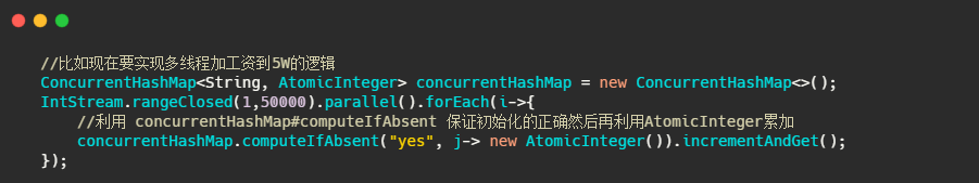 最后再来谈一下并发安全容器的使用,我就拿相对而言大家比较熟悉的 ConcurrentHashMap 来作为例子。我看新来的同事好像认为只要是使用并发安全容器一定就是线程安全了。其实不尽然,还得看怎么用。