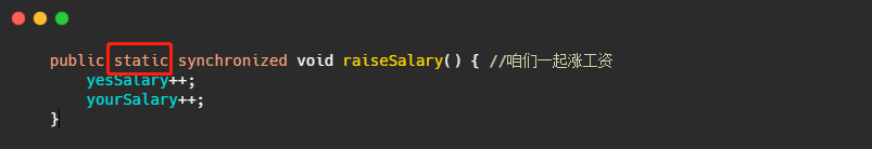 所以最简单的解决办法就是把raiseSalary() 和 compareSalary() 都用 synchronized 修饰,这样涨工资和比工资两个线程就不会在同一时刻执行,因此肯定就安全了!