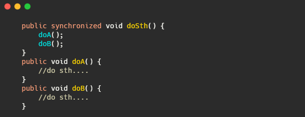 可以看到明明是一个方法里面调用的逻辑却经历了加锁-执行A-解锁-加锁-执行B-解锁,很明显的可以看出其实只需要经历加锁-执行A-执行B-解锁。